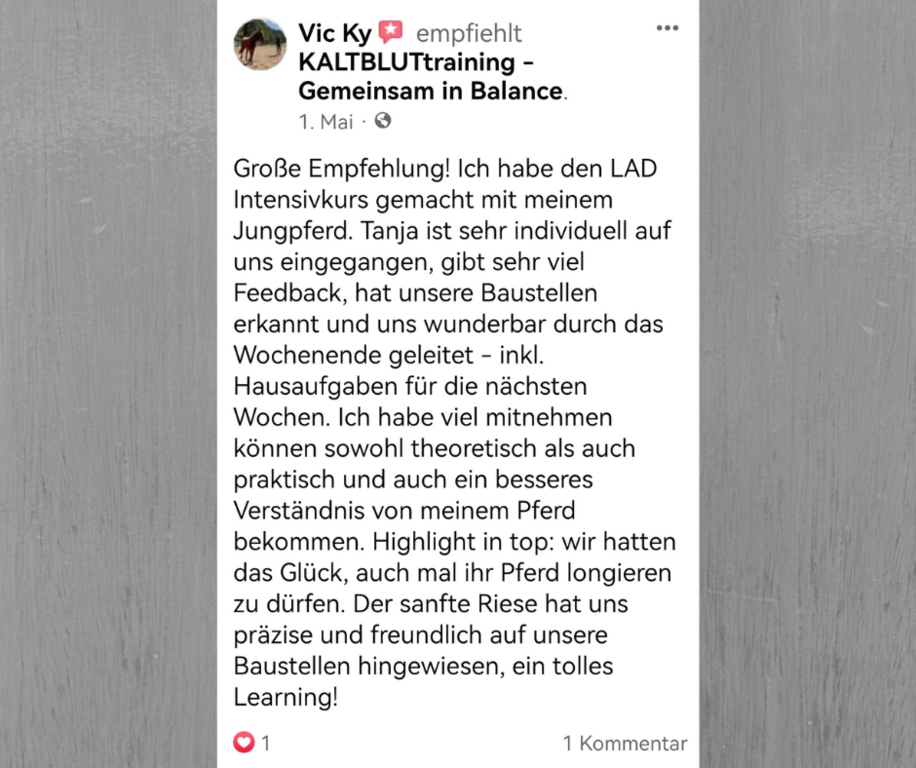 Kaltbluttraining ist ein traditionsreicher Reitstall, bei dem die soziale Komponente zu Pferd und Mensch immer im Vordergrund stand und bis heute steht. Wir freuen uns über die Erfolge unserer Turnierreiter genauso wie über die Freizeitreiter, die sich zu einem Ausritt treffen.